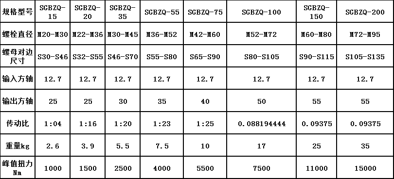 扭力倍增器說明:???在工業設備安裝或檢修時,緊固和拆卸大規格螺帽非常困難,尤其在操作者難以施力的環境中(如設備周圍空間小;無法使用加力桿及各類敲擊扳手或野外管路,鐵路無電源等情況下),這一難題更為突出,本公司科研人員經過多年的設計研發生產國內外最先進的力矩放大扳手,解決這一大難題。